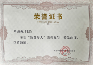 近期,山東澤華集團黨委書記牛洪起同志被新泰市精神文明建設委員會授予“新泰好人”榮譽稱號。
