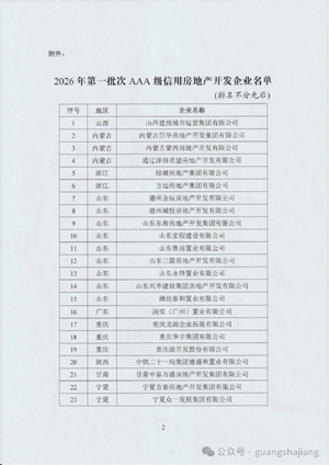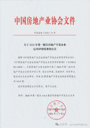 近日,在中國(guó)房地產(chǎn)業(yè)協(xié)會(huì)組織開(kāi)展的2026年度第一批次房地產(chǎn)開(kāi)發(fā)企業(yè)信用評(píng)價(jià)活動(dòng)中,經(jīng)過(guò)系統(tǒng)初評(píng)、專(zhuān)家審議、駐會(huì)會(huì)長(zhǎng)辦公會(huì)審定,山東魯房置業(yè)有限公司被評(píng)為“AAA級(jí)信用房地產(chǎn)開(kāi)發(fā)企業(yè)”。
