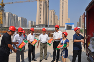 烈日炎炎、驕陽似火,近段時間,新泰市氣溫持續(xù)飆升。7月25日,新泰市總工會副主席公維貞、侯明濤一行,帶著上級領(lǐng)導(dǎo)對一線職工的牽掛,來到山東中房建筑工程有限公司開展“夏送清涼”活動,向工作在一線的企業(yè)員工送來了綠豆,山東中房建筑工程有限公司總經(jīng)理牛洪起、副總經(jīng)理、工會主席周建根、副總經(jīng)理彭煥利帶領(lǐng)工作人員全程陪同。