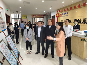 在王君書記的介紹下,參觀了清華園社區(qū)的“兩吧-兩家-四驛站”。隨后來到東城田園,先后視察了小區(qū)的紅色樓宇、物業(yè)服務(wù)中心、營銷中心等,在物業(yè)服務(wù)中心駐足時(shí),王君書記從強(qiáng)黨建、優(yōu)服務(wù)、重互動(dòng)三方面對(duì)華通物業(yè)公司的紅色物業(yè)建設(shè)作了詳細(xì)介紹。