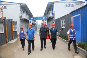 7月3日上午,山東澤華集團董事長、總經(jīng)理王成喜,中房建工副經(jīng)理趙亮,親臨集團公司泰安學(xué)府春天桃李園重點項目,在炎炎夏日,為奮戰(zhàn)在生產(chǎn)一線的職工送去一份誠摯的關(guān)懷。集團領(lǐng)導(dǎo)首先查看了施工現(xiàn)場,對施工項目進展情況進行詳細詢問;然后對職工宿舍、食堂等生活設(shè)施進行詳細了解。集團公司董事長、總經(jīng)理王成喜要求,要在保質(zhì)保量完成施工項目的基礎(chǔ)上,加快工程建設(shè)進度,強化安全意識、精品意識、工期意識,高標準建設(shè),嚴控工程施工節(jié)點;要以本次外出施工為契機,學(xué)習(xí)先進經(jīng)驗和做法,進一步拓展工作思路,不斷提升外出施工管理能力和水平。并強調(diào),要關(guān)心、關(guān)愛職工日常生活,合理調(diào)整工作時間,做好后勤保障,注意勞逸結(jié)合,為一線職工提供一個更加舒適的工作生活環(huán)境。