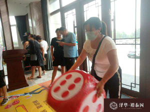 8月14日開始,澤華裕泰園展營銷中心熱鬧非凡,一張超大的大富翁尋寶圖吸引了不少到場客戶的目光,擲骰子、跳格子……這些曾經(jīng)耳熟能詳?shù)木W(wǎng)絡(luò)游戲,如今成了真人闖關(guān)尋寶活動,引來了眾多客戶的參與,活動現(xiàn)場氣氛十分活躍,一場“真人版大富翁”游戲就此精彩上演。