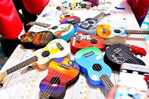 活動參與者在原木底色的尤克里里上,在專業(yè)老師的指導下,親自動手彩繪屬于自己的尤克里里,為將屬于自己的尤克里里,披上五彩美麗的外衣,和孩子一起合作,一幅時光里的美好畫作即將躍然琴身,收藏在家中,作為精美的裝飾品,擺設(shè)起來文藝氣息撲面而來。歡聚的溫馨,雅致的格調(diào),給這個寒冬加了一抹夏威夷的繽紛色彩。(裕泰園營銷中心)