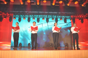 表揚(yáng)大會(huì)上,集團(tuán)黨委榮獲“先鋒黨組織”榮譽(yù)稱號(hào),集團(tuán)董事長、總經(jīng)理王成喜代表集團(tuán)黨委上臺(tái)領(lǐng)獎(jiǎng)。集團(tuán)推送的男生獨(dú)唱《星辰大?!?、詩朗誦《我愛你,中國》,抒發(fā)了集團(tuán)全體員工對(duì)黨的熱愛和祝福,彰顯了建筑工人的精神風(fēng)采,進(jìn)一步堅(jiān)定了集團(tuán)全體職工“聽黨話、頌黨恩、跟黨走”的崇高信念。