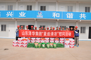 活動現(xiàn)場,集團工會主席徐加東代表集團公司為堅守在一線的項目職工送上綠豆、礦泉水等慰問品,對大家的辛勤表示感謝,對一線職工不畏高溫、堅守崗位、拼搏奉獻的精神表示贊揚,同時叮囑大家要努力克服高溫天氣帶來的困難和挑戰(zhàn),注意防暑降溫,做好自身防護,確保各項工作安全有序推進,為公司實現(xiàn)全年目標任務貢獻自身力量。