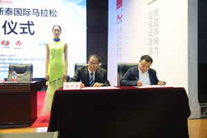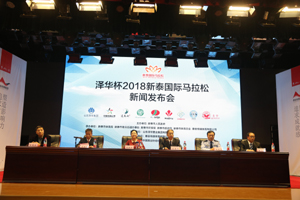 10月8日, “澤華杯”2018新泰國際馬拉松新聞發(fā)布會在泰安召開。本次賽事是由新泰市人民政府主辦,新泰市體育局、新泰市青云街道辦事處、新泰市環(huán)保局、新泰市旅游局、新泰市體育總會、泰安傳媒體育有限公司承辦,山東澤華置業(yè)集團(tuán)有限公司全程冠名。新泰市人民政府副市長周典紅,新泰市政府應(yīng)急辦公室副主任劉祿新,新泰市體育局黨委書記、局長韓春華,新泰市公安局黨委副書記楊德軍,泰安傳媒集團(tuán)副總經(jīng)理徐國新,山東澤華置業(yè)集團(tuán)有限公司黨委書記田清坤出席了新聞發(fā)布會。