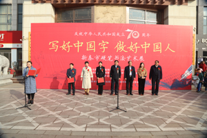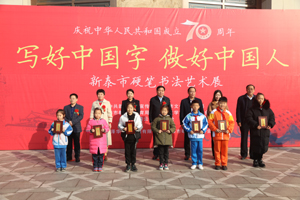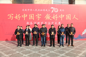 為隆重慶祝中華人民共和國成立70周年,全面貫徹習近平新時代中國特色社會主義思想和十九大精神,堅定文化自信,弘揚中華民族的優(yōu)秀傳統(tǒng)文化,繁榮硬筆書法藝術,激發(fā)廣大師生和硬筆書法愛好者學習書法的興趣和熱情,進一步普及規(guī)范字的書寫,培養(yǎng)良好的書寫習慣,提高藝術素養(yǎng),培養(yǎng)人們認識美、發(fā)現(xiàn)美、創(chuàng)造美的能力,促進社會和諧發(fā)展,12月21日,由中共新泰市委宣傳部、新泰市文化和旅游局、新泰市教育和體育局,新泰市文聯(lián)、青云街道辦事處主辦,山東澤華置業(yè)集團有限公司、新泰市硬筆書法協(xié)會承辦的“慶祝中華人民共和國成立七十周年新泰市硬筆書法藝術展”開幕儀式在新泰文化藝術城隆重舉行。新泰市教育和體育局黨組書記、局長、新泰一中校長王振湖同志;新泰市文化和旅游局局長高會利同志;新泰市委宣傳部志愿者服務中心黨支部書記張昕同志;青云街道黨工委委員、宣傳委員張瓅銘同志;新泰市文聯(lián)干部、市音協(xié)主席周霞同志;山東澤華集團黨委書記田清坤同志;新泰市硬筆書法協(xié)會主席王光華同志出席了開幕儀式。
