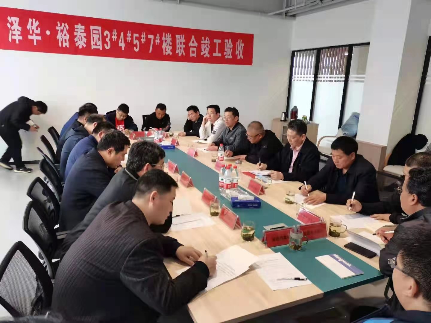 會(huì)議首先由王成朋同志代表集團(tuán)公司對(duì)各級(jí)領(lǐng)導(dǎo)的到來(lái)表示熱烈的歡迎,并對(duì)集團(tuán)公司長(zhǎng)久以來(lái)的關(guān)心和支持表示衷心的感謝,然后由項(xiàng)目參建負(fù)責(zé)人就項(xiàng)目建設(shè)各項(xiàng)情況向與會(huì)領(lǐng)導(dǎo)進(jìn)行了詳細(xì)匯報(bào)和說(shuō)明,各驗(yàn)收單位通過(guò)查驗(yàn)現(xiàn)場(chǎng)、查閱驗(yàn)收資料等方式對(duì)裕泰園3#4#5#7#樓進(jìn)行了驗(yàn)收,并對(duì)裕泰園項(xiàng)目建設(shè)各項(xiàng)工作進(jìn)行高度贊揚(yáng)和充分肯定。