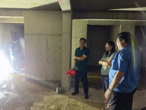 驗(yàn)收人員對(duì)基礎(chǔ)剪力墻混凝土強(qiáng)度進(jìn)行現(xiàn)場(chǎng)回彈,對(duì)原材料送檢、施工技術(shù)交底等情況進(jìn)行現(xiàn)場(chǎng)檢查,結(jié)合設(shè)計(jì)單位、勘察單位意見(jiàn),各項(xiàng)檢查均滿足規(guī)范和設(shè)計(jì)要求,同意進(jìn)行后續(xù)施工。(周陽(yáng))