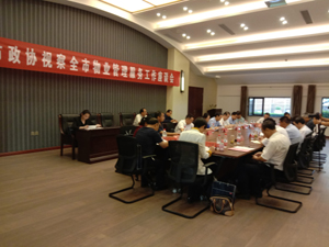 視察結(jié)束后,在文華園營銷中心4樓會議室舉行了簡短的工作總結(jié)會議。會上,首先由市政府副市長周典紅同志作關(guān)于全市物業(yè)管理服務(wù)工作情況通報,并聽取了政協(xié)委員及物業(yè)協(xié)會同志的調(diào)研報告,最后,市政協(xié)主席夏念新同志進行了總結(jié)發(fā)言。
