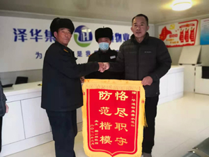 2022年1月13日,秀水花園19號樓業(yè)主楊先生為表達對日前英勇抓獲盜竊嫌疑人的秩序人員的敬意,親自將一面鮮艷的錦旗送到了秀水花園物業(yè)服務中心工作人員的手中。