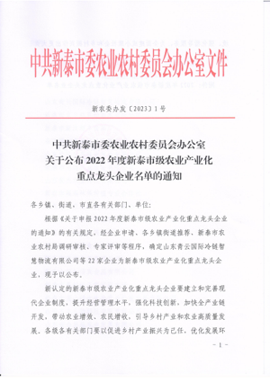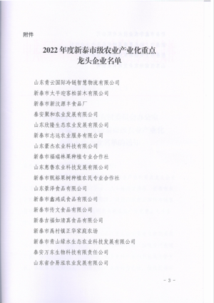 2022年,惠魯農業(yè)公司按照澤華集團總體部署和工作要求,不斷建立和完善現(xiàn)代企業(yè)制度,提升經營管理水平,強化科技創(chuàng)新,加快全產業(yè)鏈開發(fā),帶動農業(yè)增效、農民增收,引導鄉(xiāng)村產業(yè)和農業(yè)高質量發(fā)展。公司經過新泰市農業(yè)農村局調研審核,專家評審等程序,被評為新泰市級農業(yè)產業(yè)化重點龍頭企業(yè)榮譽稱號。