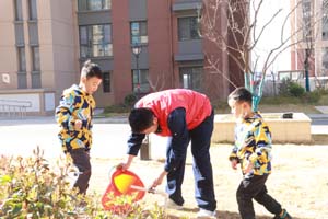 活動現(xiàn)場,孩子們在家長的帶領(lǐng)下“揮鍬鏟土、扶苗填坑”,干的有模有樣,等到完成澆水最后 一道工序時,孩子們的頭上已經(jīng)有了細細的汗珠。一顆顆樹苗在小區(qū)里安家落戶,想象著未來“綠樹成蔭,春意盎然”的景象,大家都充滿了歡樂和期待。