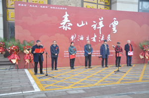 本次活動(dòng)由新泰市文聯(lián)欒剛主席主持,開(kāi)幕式上書協(xié)陳廣秀主席、劉海生先生、市委宣傳部張燕部長(zhǎng)分別進(jìn)行了致辭。隨后參會(huì)領(lǐng)導(dǎo)和嘉賓共同啟動(dòng)了開(kāi)幕式水晶球,在各位領(lǐng)導(dǎo)、各位嘉賓和朋友們的關(guān)心支持下,慶元旦·迎新年——泰山祥云·劉海生書法展開(kāi)幕式圓滿舉辦。