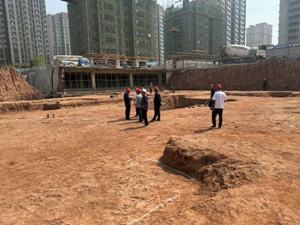中房建工項(xiàng)目部負(fù)責(zé)人在現(xiàn)場(chǎng)匯報(bào)了基坑開(kāi)挖的基本情況后,各工程責(zé)任主體單位現(xiàn)場(chǎng)結(jié)合勘察報(bào)告和釬探報(bào)告,對(duì)基槽開(kāi)挖和地基土質(zhì)情況進(jìn)行實(shí)地查看。