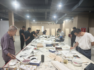 活動開始之前,藝術(shù)家們齊聚新泰文化藝術(shù)城二樓展廳,進行了藝術(shù)交流筆會;筆會結(jié)束后,集團紀委書記、工會主席王功隨帶隊,帶領采風團一行來到澤華生態(tài)農(nóng)場櫻桃種植基地進行參觀。本次參觀的櫻桃基地占地192.6畝,品種以沙王為主,共種植大棚27個。