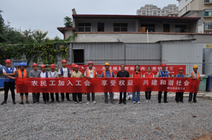 在集團工會主席王功隨的陪同下,街道工會領導一行三人,來到清華園施工項目現(xiàn)場開展走訪。走訪過程中,張主席詳細了解了一線農(nóng)民工的工作和生活情況,并現(xiàn)場答疑解惑,幫助解答農(nóng)民工在工作和生活中遇到的各類問題,耐心指導農(nóng)民工通過手機掃碼實名認證的方式入會,并為一線員工送去了面粉、醬油、食醋等物品,共計200份。通過這次活動,讓農(nóng)民工們了解到工會的職能職責,大大激發(fā)了農(nóng)民工加入工會的熱情。