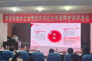為深入學(xué)習(xí)貫徹習(xí)近平新時(shí)代中國(guó)特色社會(huì)主義思想和黨的二十大精神,提升泰安市物業(yè)行業(yè)黨建工作水平,泰安市物業(yè)服務(wù)行業(yè)黨委組織開(kāi)展泰安市物業(yè)企業(yè)黨組織書(shū)記“優(yōu)秀課件”評(píng)選活動(dòng)。經(jīng)前期推薦、申報(bào)與初審,華通物業(yè)提報(bào)的課件《強(qiáng)化黨建引領(lǐng) 夯實(shí)紅色物業(yè)發(fā)展根基》成功入圍決賽,獲得現(xiàn)場(chǎng)宣講資格。