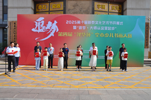 開幕式上,中共新泰市委常委、宣傳部部長周典紅指出:近年來,我市大力實(shí)施“文化強(qiáng)市”戰(zhàn)略,積極搭建平臺,廣泛開展文藝創(chuàng)作交流活動,大力弘揚(yáng)中華優(yōu)秀傳統(tǒng)文化,推動文化藝術(shù)事業(yè)繁榮發(fā)展,為新時代“五個新泰”建設(shè)提供了強(qiáng)大的價值引導(dǎo)力、文化凝聚力和精神推動力。這次活動,既是貫徹落實(shí)習(xí)近平文化思想的生動實(shí)踐,也是推動精神文明建設(shè)的具體體現(xiàn),必將對我市文化文藝事業(yè)的繁榮發(fā)展起到積極的促進(jìn)作用。同時也希望孩子們,在藝術(shù)求知的道路上,用詩文書畫頤養(yǎng)性情,鑄就堅韌不拔、勇于開拓的精神與品格,做德智體美勞全面發(fā)展的優(yōu)秀少年;希望廣大文藝教育工作者,將更多的熱情與精力投放到培養(yǎng)藝術(shù)接班人的工作中去,將中華優(yōu)秀傳統(tǒng)文化的精華、正確的審美價值觀和良好的文化藝術(shù)修養(yǎng)傳遞給孩子們,引領(lǐng)學(xué)生德智體美勞全面發(fā)展;希望各有關(guān)部門單位和社會各界,一如既往地關(guān)心支持文化文藝事業(yè)發(fā)展,組織開展好各類文化藝術(shù)活動,創(chuàng)作更多優(yōu)秀文藝作品,不斷豐富人民群眾的精神文化生活,提升城市品味,豐富城市內(nèi)涵,增強(qiáng)城市活力,為新時代現(xiàn)代化強(qiáng)市建設(shè)貢獻(xiàn)更大力量!