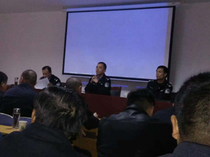 11月28日,泰安市公安局治安支隊(duì)召集所轄區(qū)縣各局負(fù)責(zé)人、保安公司負(fù)責(zé)人,召開(kāi)保安行業(yè)管理及警用標(biāo)識(shí)規(guī)范使用推進(jìn)會(huì),主要是規(guī)范前期檢查、督查中保安行業(yè)出現(xiàn)的三個(gè)方面的突出問(wèn)題:一是人員不按規(guī)定著裝,要著有警察標(biāo)志的服裝及帽徽、警徽等;二是保安室違規(guī)配備有標(biāo)有警察(police)裝備器材;三是保安值勤點(diǎn)外觀違規(guī)裝飾有明顯的警察(police)等標(biāo)志。會(huì)議要求從即日起對(duì)全市保安公司及保安從業(yè)人員進(jìn)行集中整治,進(jìn)一步規(guī)范全市保安市場(chǎng),創(chuàng)造公平、公正、合法、守規(guī)的市場(chǎng)環(huán)境,依法、依規(guī)取締黑保安。(劉守邦)